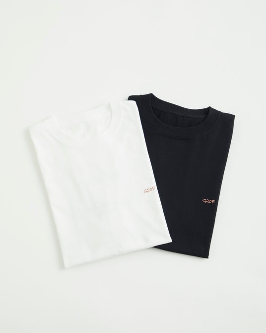 Tシャツは、5.6オンスのしっかりとした生地感と肌触りの良さを兼ね備えたコットン天竺。首周りは2本針ステッチで耐久性にも優れています。