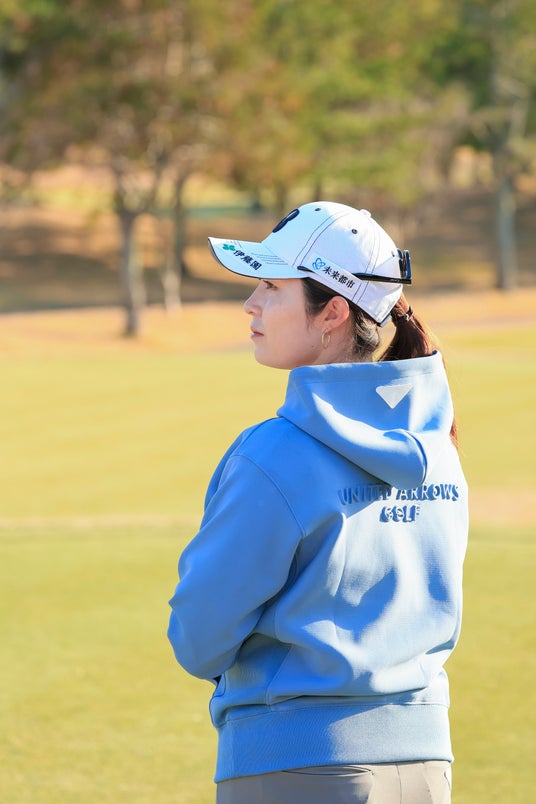 この度、UNITED ARROWS GOLF様とウェアのサプライヤー契約をさせていただきました。女子プロゴルファーにとってのウェアは、変化に富んだ自然環境の中で戦うために機能性はもちろん重要なのですが、自分自身の気持ちを高め、表現する大切なツールです。以前から憧れていたUNITED ARROWSのデザインを身にまとえることを大変光栄に思っております。それにふさわしい内面と実力を備えたゴルファーとなるべく、これからも努力を重ねてまいります。「一段上の大人のプロゴルファー」として、最高のパフォーマンスをお見せできるよう精進してまいりますので、今後とも応援のほどよろしくお願いいたします。