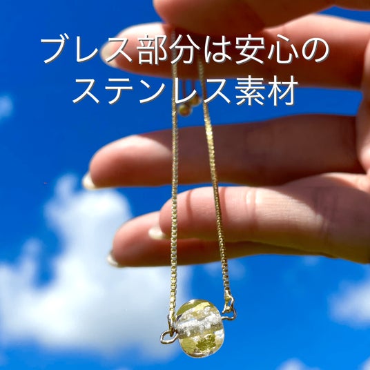 ・24金の金箔入りで見た目もシンプルながらも華やかでお洒落なブレスレットとして大変人気なデザインです。