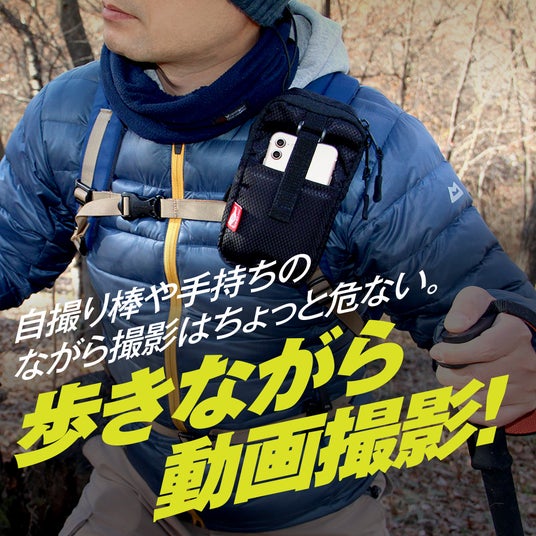 Youtubeやinstagramへ動画を投稿するのが一般的になりました。スマホを使って登山行の動画を撮りたい! そんな風に思う方は多いと思います。フリースタイルアウトドアポーチなら、スマホを気軽にアクションカムのように使うことができます。自撮り棒や手でスマホを持つよりずっとスマートに撮影することが可能です。