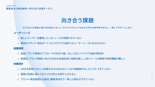 ・いつもはグッドパッチと共同で「顧客起点の商品開発×売れるEC支援サービス」の提供を開始した