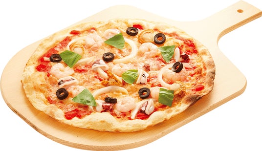 エビ、イカ、ホタテを使った、魚介たっぷりのピッツァです。生地に塗るソースには、よりトマトの旨みが感じられるようリニューアルした濃厚なトマトソースを使用。オリーブやバジルの風味が、魚介の旨みにアクセントを加えます。