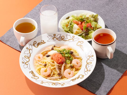 平日限定で提供しているココスのランチメニューに、海老ときのこを使った明太子クリームパスタと、看板商品“包み焼きハンバーグ”をアレンジしてお召し上がりいただける商品が登場です。また、アペタイザーやデザートをランチタイム限定のお手頃な価格で販売します。