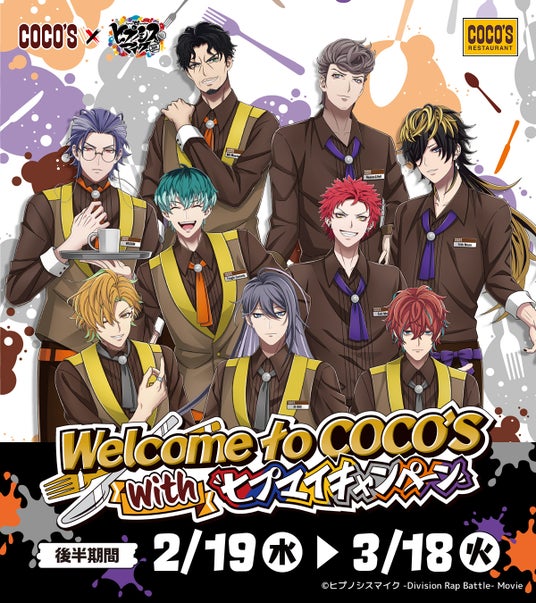株式会社ココスジャパン(代表取締役社長:一木 直哉 本社:東京都港区)が全国に展開するファミリーレストラン「ココス」は、1月22日(水)~3月18日(火)の期間、映画『ヒプノシスマイク -Division Rap Battle-』とのコラボ企画「Welcome to COCO’S with ヒプマイ キャンペーン」を開催します。
