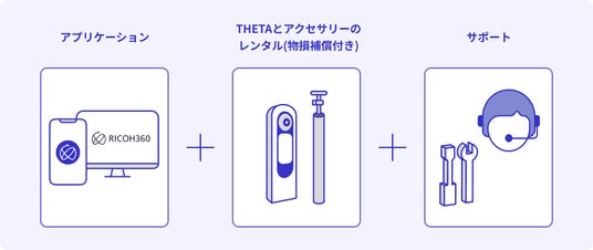 - THETAとアクセサリーの物損補償付きレンタル、サポート体制