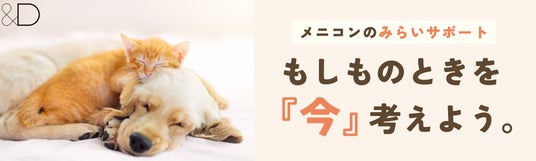 株式会社メニコン(本社:名古屋市中区葵三丁目21番19号、代表執行役社長 COO:川浦康嗣)は、「&D(アンド・ディー)」のコアサービスであった「犬のみらい保障」から「みらいサポート」へとサービスをリニューアルし、新たに愛猫の終生飼養を開始したことをご案内いたします。