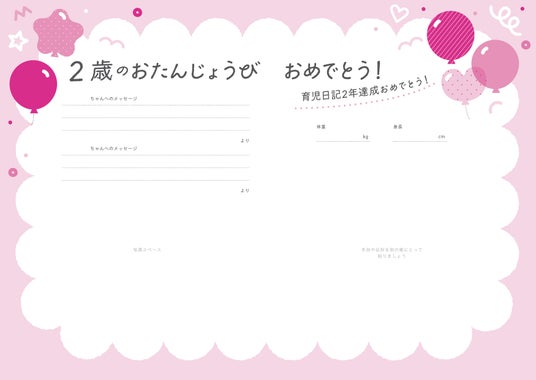 時間的にも体力的にも余裕がない中で書くママとパパを想って、中身は落ち着いた優しい色合いにしています。