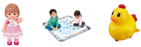 当社では、温度の変化で色が変わるインキ「メタモインキ」を応用し、未就学児童向けの知育玩具をはじめとする様々な玩具の企画開発を行っております。主な商品に「スイスイおえかき」シリーズ、抱き人形「メルちゃん」シリーズがあります。いずれもロングセラー商品で「スイスイおえかき」は2025年で発売25年目、「メルちゃん」は発売33年目を迎えました。今年で24年目を迎えた「アヒル隊長」なども含め、これからも玩具を通じ、子供たちに感受性と創造性をのばす「夢と小さな驚き」を提供し続けます。