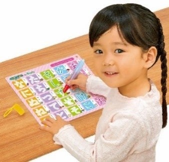 専用ペンは、名古屋市立大学の横山清子教授と共同研究で作り上げた流線形状のペンとなっており、人間工学に基づいた形状で、正しい持ち方でペンを握ったときに、持ちやすいよう軸にくぼみが付いています。くぼみに親指がくるように持って、繰り返し遊ぶことで自然に正しいペンの持ち方を身に付けることが出来ます。