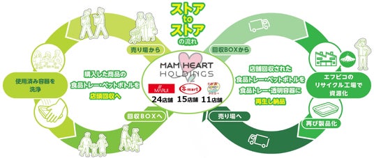 株式会社エフピコ(本社:広島県福山市、代表取締役会長佐藤 守正、以下「エフピコ」)と株式会社 マムハートホールディングス(本社:岡山県津山市、代表取締役社長松田 欣也、以下「マムハートホールディングス」)は、中国地方に展開するスーパー(マルイ、エスマート、わたなべ生鮮館)50店舗で、現在取り組んでいる「ストアtoストア」での水平リサイクルをさらに推進し、積極的に「エコトレー」「エコAPET」を使用する協働をさらに深めて参ります。