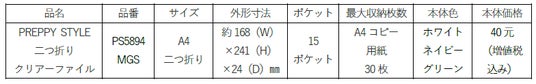 ■「PREPPY STYLE 二つ折りクリアーファイル」製品仕様