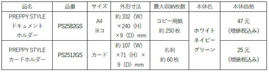 ■「PREPPY STYLE ドキュメントホルダー/カードホルダー」製品仕様