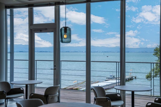 「Ripple」とは、日本語で「波紋」を意味する言葉。同社では「Ripple Work」というコンセプトのもと、従業員の想いや行動が波紋のように広がり、部署や立場を超えて共鳴し合い、新たな価値を生み出していく働き方を目指し、働き方改革を進めていました。改革の一環であった本オフィスリニューアルプロジェクトでは、「物を介したコミュニケーション」をオープンな空間で交わせる「Ripple Lab」の新設や、自らの働き方に合わせて働く場所を選択できる選択型オフィスへの運用ルール刷新を通じて、「Ripple Work」実現に向けた働き方のアップデートをサポートするとともに、さらなるエンゲージメント向上へコミット。琵琶湖を望むカフェスペースは、休憩スペースとしてだけでなく、打ち合わせやイベント、社内勉強会など、多様な用途で使用可能となっており、企業文化や働き方といった「オプテックスらしさ」を体感できる場として活用いただいています。