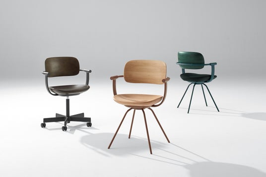 木の温もりにイトーキ独自のエルゴノミクスを搭載したvertebra03 WOOD。国産広葉樹であるクリの無垢材を切削して成形した背とシートの製作はカリモク家具が担当。木工家具を作り続けてきた同社のノウハウと、イトーキのもつ人間工学やシートトレーサーなどを活用した設計技術によって、木材の質感を活かしながら、執務姿勢に追従する最適な背とシートの形状を実現しました。着座位置を安定させるための座面のノンスリップ加工や、木目を残しながら繊細なカラーリングを表現する塗装技術なども特徴です。