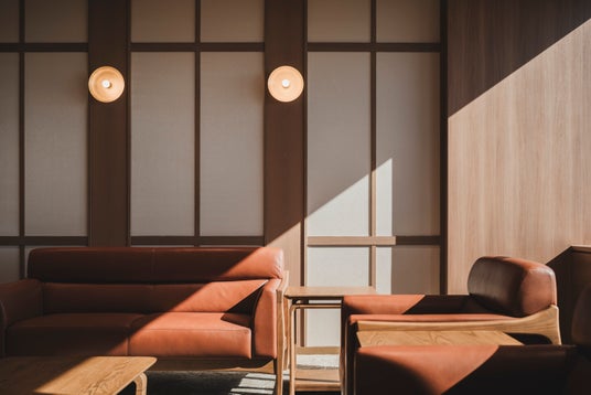 本プロジェクトでは、鶴や桜、飛行機の形状を想起させる“J”ラインカーブを随所に取り入れ、JALらしさを空間全体で表現。オーク材や伝統的な組子細工を活かし、日本らしい気品と安らぎのある上質な空間を創出しました。