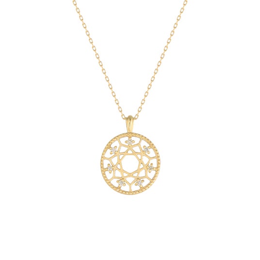悪い夢を払いのけ、いい夢のみを運んでくれる「ドリームキャッチャー」モチーフのネックレス、ピアス、ブレスレット。実はパワーストーンとして知られ、古代より「勝利」や「何ものにも屈しない強い心」という意味が込められているダイヤモンドを散りばめました。すっきりとしたサークルのシルエットはシーンを選ばず着用いただけます。