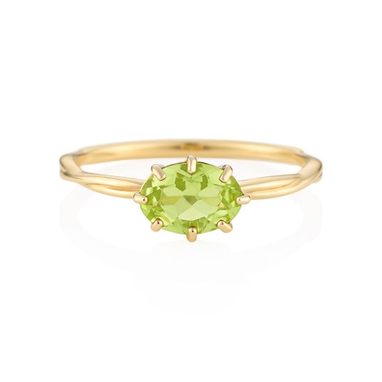 古代より「太陽の石」としてお守りに用いられていたペリドットをセッティングしたリングとブレスレット。明るく輝くフレッシュなグリーンカラーのペリドットに、二本の地金ラインが捻られながら繋がるエネルギッシュなデザインのリングは手元を華やかに演出してくれます。「魔除けの石」とも言われるガーネットが存在感を放つネックレスとピアスは、星の輝きを象った石座を使用。シンプルになりがちな冬のスタイリングにエレガントなアクセントを加えてくれます。