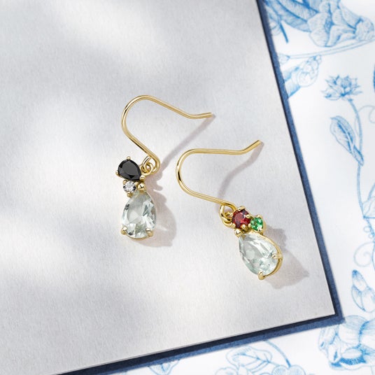 K10YG Pierced Earring / Green Amethyst / Garnet / Black Chalcedony / Topaz ¥39,600