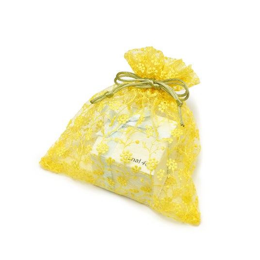 「2025 MIMOSA Collection」のジュエリーは、ミモザの花々がデザインされたレース素材のミモザポーチにお包みしてお渡しいたします。小物入れとしても使える上品なデザインで、日常でも活躍するアイテムです。