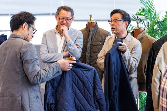 出来上がったアウターウェアのお披露目 + 光石さんをモデルに3通りの着方をご紹介