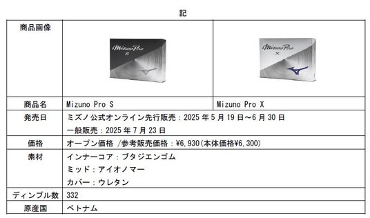 ミズノは、多くのゴルファーに評価されてきたミズノのゴルフクラブの“打感”をボールでも追求し、ゴルフボールで初めて「Mizuno Pro」シリーズとして展開する「Mizuno Pro S(ミズノプロ エス)」「Mizuno Pro X(ミズノプロ エックス)」を5月19日からミズノ公式オンラインにて先行販売します。7月23日からは全国のミズノゴルフ取扱店で販売します。