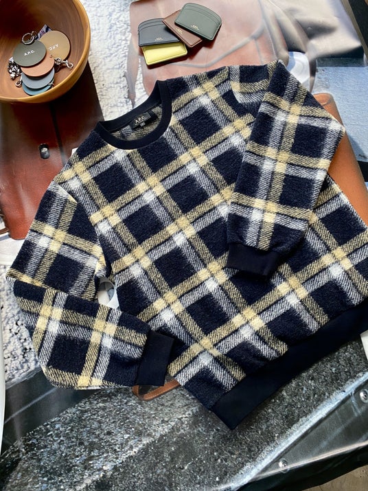 Tyrol スウェットシャツしっかりとした肉感と膨らみがありながら軽さを兼ね備えた、オーセンティックなイエロー/グレー/ブラックチェックのウールブレンドスウェット。