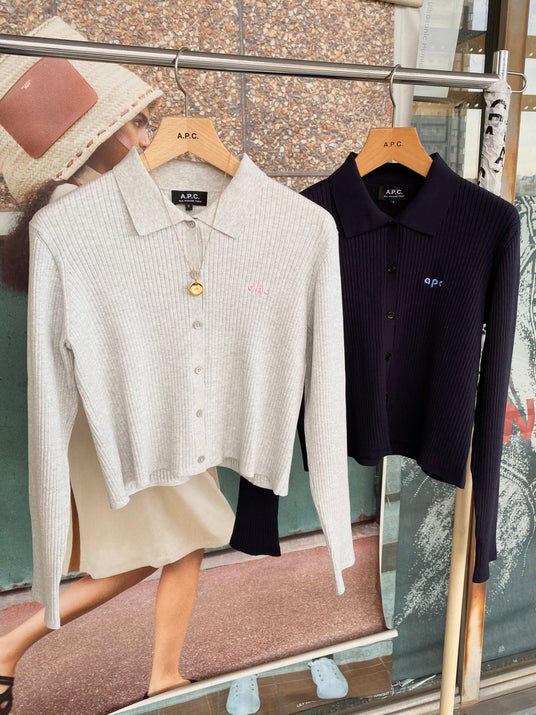Suzy カーディガン定番のロゴデザインにはないスペシャルなapc小文字のロゴ刺繍をあしらった、ショート丈の襟付きカーディガン。