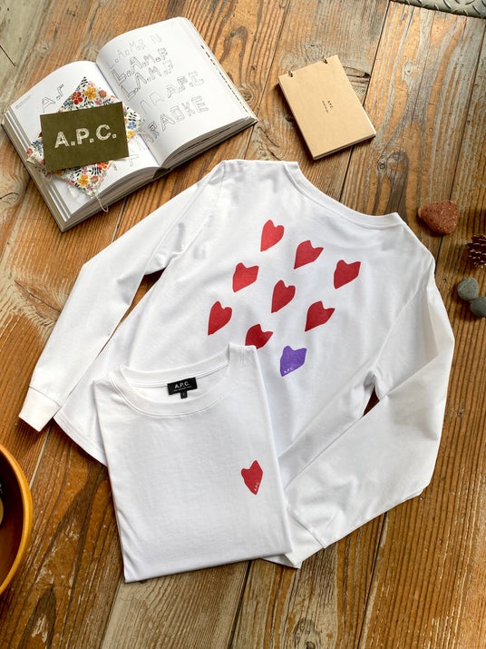 ハートプリント長袖TシャツA.P.C.オリジナルデザインハート柄のバックプリント長袖Tシャツ。