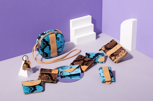 大胆なスネーク柄とヌメ革を印象的なコンビネーションに。