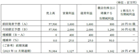 1. 2024年11月期通期連結業績予想数値の修正