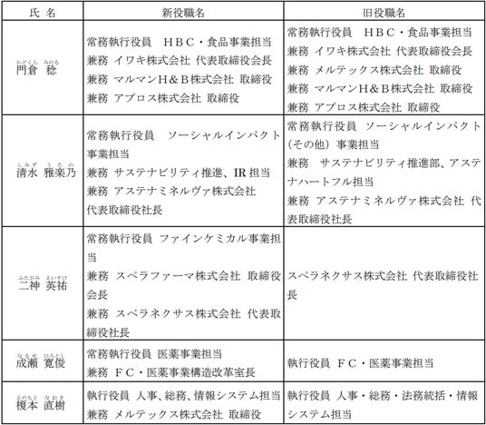 アステナホールディングス株式会社(本社:東京都中央区、代表取締役社長:瀬戸口 智、証券コード:8095)は、2025年2月27日開催の取締役会において、下記のとおり取締役の委嘱業務の変更、組織変更及び人事異動について決議いたしましたので、お知らせいたします。