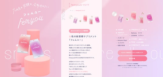 女性が自分らしく輝ける毎日をサポートしたいという想いから『femyou(フェムユー)』を立ち上げました。新商品「Rafuma(ラフマ)」と「LIGNAN(リグナン)」は、女性特有のリズムに寄り添う商品です。Webサイトでは、ブランドの背景や想いを伝えつつ、商品選びのサポートも紹介しています。オンラインストアだけでなく、全国のドラッグストアでもご購入いただけるため、ぜひ多くの方にご利用いただきたいです。