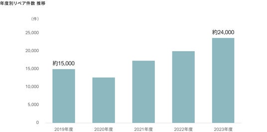 図1:増加傾向にあるリペア件数2020年度は新型コロナウイルス感染症拡大の影響を受けて一時的に件数が減少しましたが、年々、リペア件数は増加傾向にあります。
