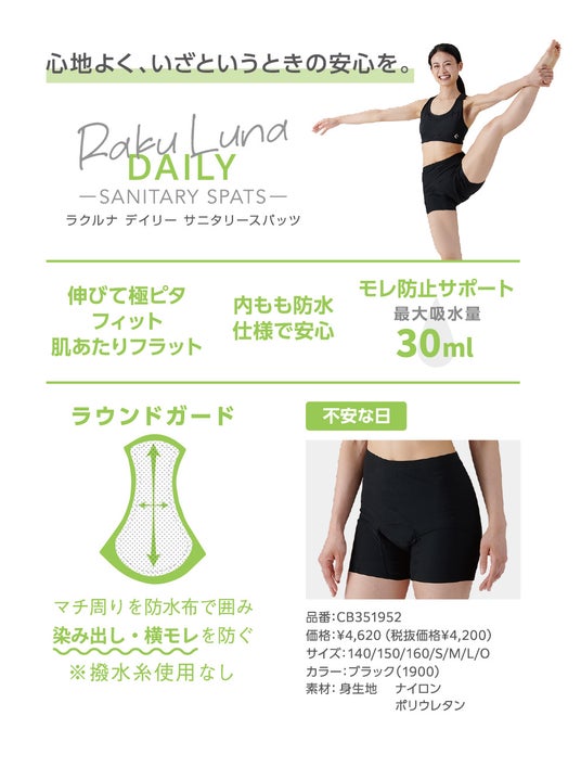「全力で動ける、安心の秘密。」 激しい運動の日にご使用いただけるRaku Luna ACTIVE(ラクルナアクティブ)