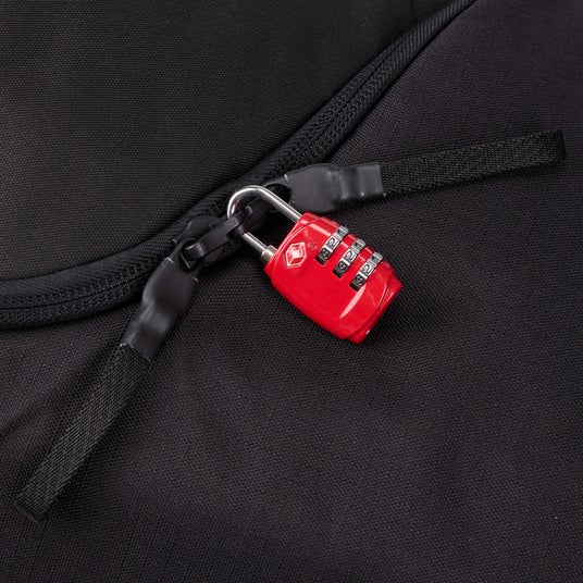 盗難を防ぐロック式ジッパー(南京錠別売)。