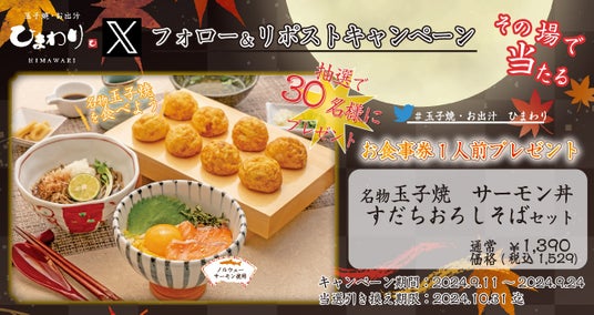 【景品】玉子焼・お出汁ひまわり店内でご利用いただける「『名物玉子焼 サーモン丼 すだちおろしそばんセット1人前』デジタルお食事券(税込み1,529円相当)」を30名様にプレゼント