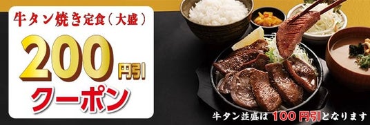 宮本むなし公式アプリでは、1月7日まで何度でも使える「厚切り牛タン定食 並盛100円引き・大盛200円引きクーポン」を配信いたします。会員の方限定でご利用いただけるクーポンですので、この機会にぜひ宮本むなし公式アプリをダウンロード&会員登録ください。
