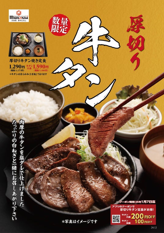 12月25日(水)から「厚切り牛タン焼き定食」を数量限定販売