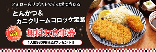 あわせて2024年12月25日(水)午前11時~2025年1月7日(火)の期間に「宮本むなし公式Xフォロー&リポストキャンペーン」を実施いたします。宮本むなしの公式Xアカウントをフォローし、キャンペーン投稿をリポストすることで応募でき、その場での抽選で40名様に、定食屋宮本むなし各店舗内で「とんかつ&カニクリームコロッケ定食(980円税込)」1人前をお召し上がりいただけるデジタルお食事券が当たるキャンペーンです。ぜひこの機会に宮本むなし公式Xのフォロー&リポストでのご参加をお待ちしております。