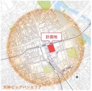 規制緩和等を活用して民間ビルの建替えを促進することで、天神地区に新たな空間と雇用を創出するプロジェクト。国家戦略特区により航空法高さ制限の緩和を獲得した機を逃すことなく、様々な施策を組み合わせることで、耐震性が高い先進的なビルに建替えるとともに、水辺や緑、文化芸術、歴史などが持つ魅力にさらに磨きをかけ、多様な個性や豊かさを感じられる、多くの市民や企業から選ばれるまちづくりに取り組むもの。 なお、天神ビッグバンエリア(天神交差点から半径約500m)の建築確認申請件数は63件となっている。