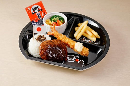 くまモンがデザインされたお子様向けのプレートです。熊本名物のふりかけ「ご飯の友」でお楽しみいただけます。