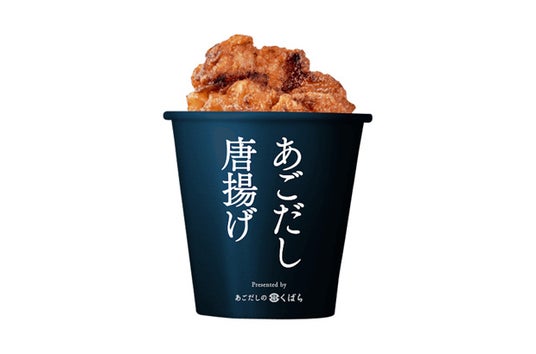 九州名物の「あご(トビウオ)だし」の唐揚げをドリンクホルダーにも挿しやすいカップタイプでお楽しみいただけます。