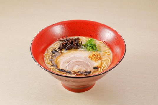豚骨スープに中太麺の相性が抜群の王道の熊本ラーメンです。マー油とトッピングのフライドガーリックが食欲をそそります。
