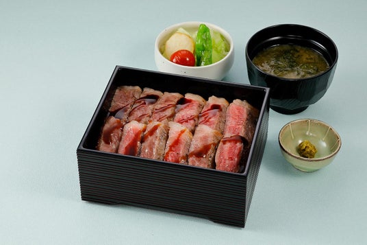 ヘルシーな赤みが特徴の阿蘇名産「あか牛」のステーキ重です。