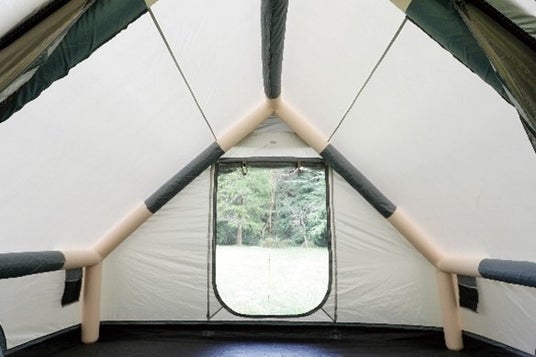 一般的なテントの金属製ポールの代わりに、空気を入れるチューブをフレームとして使用するテント。部品が少なく、初心者や女性でも短時間で簡単に設営できるのが特長です。また、設営後は空気注入口を開けてワンプッシュで空気が抜けて折りたためるので撤収も楽。アウトドアはもちろん、災害時の備えとして活用できます。
