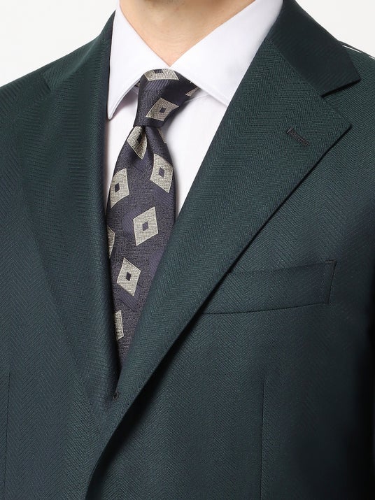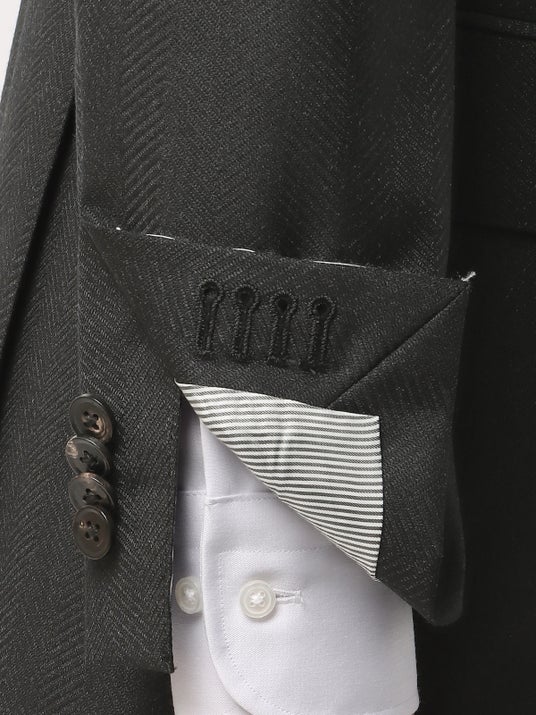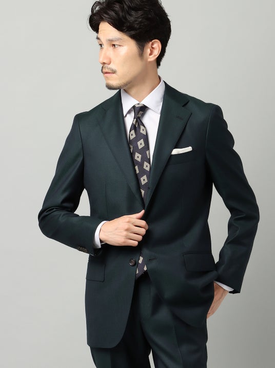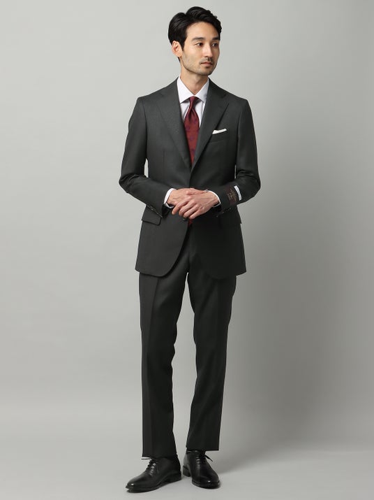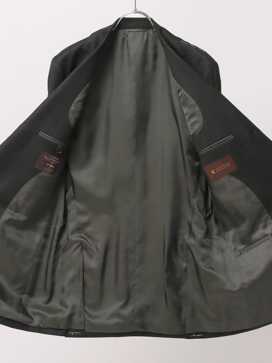 2000年当時、人気を博していたヘリンボーン柄は幅が細く、遠くからは無地見えするものが主流でした。そこで、ファッション性を楽しみたいという現代の需要とスーツの時流に合わせて、ビジネス使いを加味しつつ華やかな印象にするため、当時の王道ヘリンボーン柄から柄幅の広いデザインにアレンジしました。また、ウール100%にすることでシワの回復力に優れるほか、袖裏にキュプラを使用することで袖通しが良く、静電気が起きづらいためこれからの季節に活躍するスーツです。