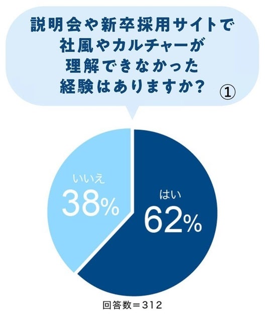 企業説明会や新卒採用サイトでは、62%の学生が「社風やカルチャー」を理解できていないことが明らかになりました。また、入社する企業を選択する時期に差し掛かり、入社後の姿をイメージする上で「一緒に働く人の雰囲気」や「私生活との両立が可能か」を見極めていることが推測されます。