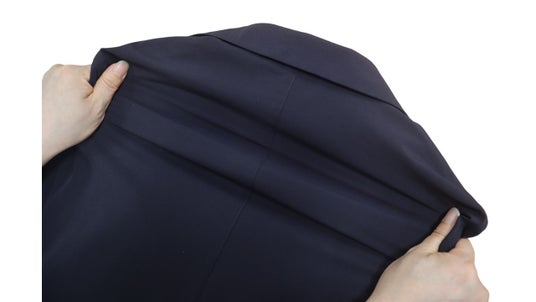 今回の発売するセットアップの生地は、縦方向に約30%、横方向に約25%伸びるスポーツウエアに使用されるほどのストレッチ性と、汗を素早く吸収し生地表面へ移動・拡散する優れた吸汗速乾性が特長です。ジャケットは、機能性素材でありながらもビジネスシーンを想定し、ハリのある生地を採用したことに加え、胸ポケットやフラップポケットを設計することできちんと感を演出しています。パンツは、前回同様ウエストをゴム設計にし、座った時の圧迫感を軽減。股下部分にはひし型状のマチを作り生地が突っ張らないガゼットクロッチ仕様にするなど、スポーツ機能とビジネスを融合した商品となっています。