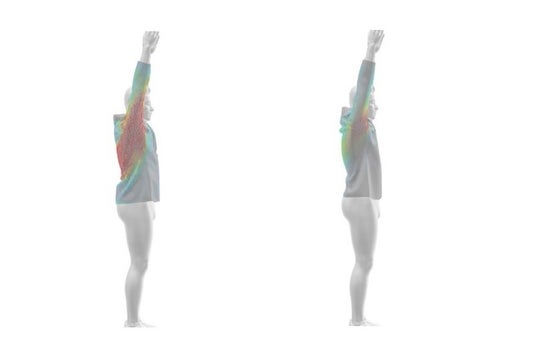 従来品とダイナモーションフィット搭載ミズノアイスタッチムーブジャケットでの比較