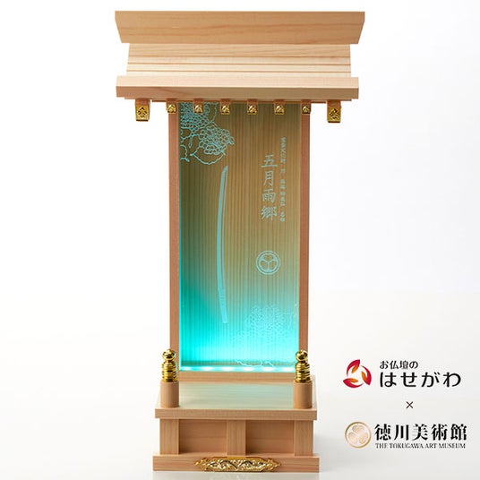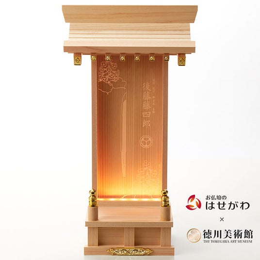 徳川美術館に所蔵される人気刀剣6振り(鯰尾藤四郎・後藤藤四郎・物吉貞宗・南泉一文字・本作長義・五月雨郷)を通称『とくびぐみ』のオリジナルプレートが付属したオリジナル仕様の「推し壇」です。お仏壇のはせがわが販売する通常の「推し壇」よりコンパクト(幅200×高さ350×奥行110mm)にすることで、お部屋に置きやすいサイズにいたしました。